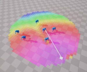 In order to understand how the agent’s velocity is being chosen it is possible to draw the scored velocity field. In the main Mercuna menu, set a debug actor and turn on “Avoidance”.