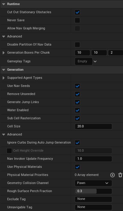 Gameplay Tags are arbitrary user tags that are applied to the nav grid. These can be used with modifier volumes or seeds to exclude particular grids by tag.