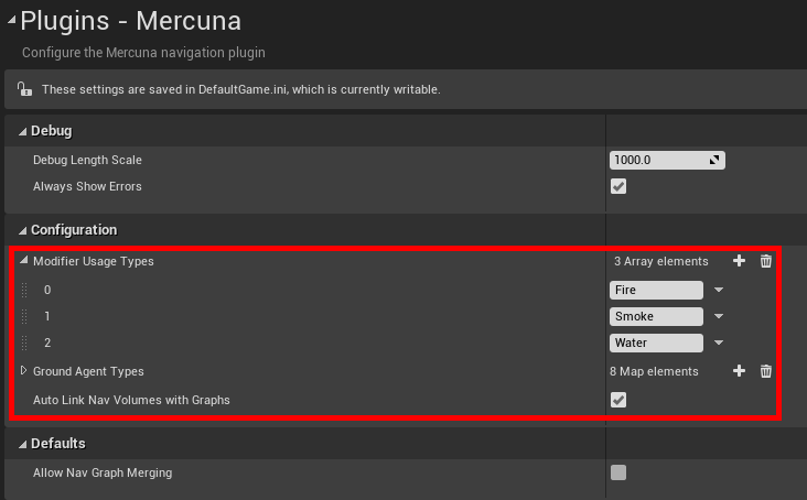 Internally Mercuna automatically splits the grid data into chunks and saves each part within an invisible grid of MerNavDataChunk actors. As these chunk actors are loaded and unloaded by the World Partition system, both in the editor and at runtime, the corresponding part of the grid will be merged in on load, or purged from memory on unload.