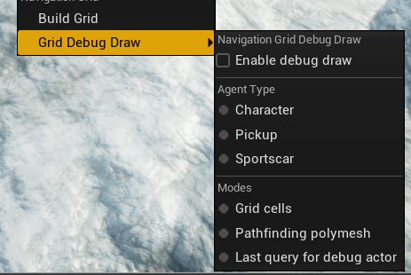 When one of the debug draw modes is active, further advanced options are shown at the bottom of the Navigation Debug Draw Menu that allow you to further customize what is drawn.