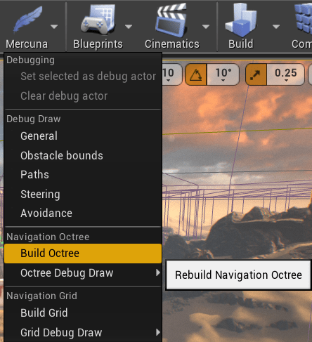 - From the Mercuna menu select Build Octree and wait for generation to complete.